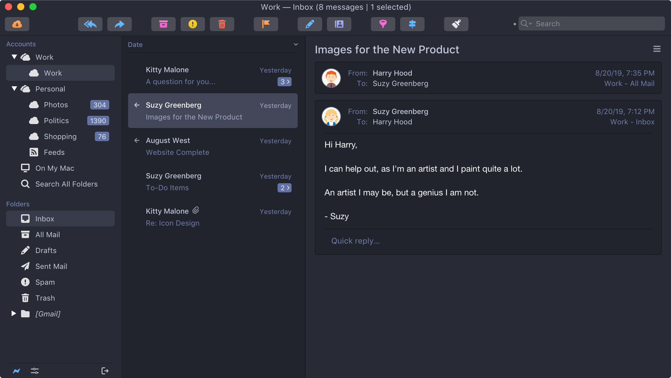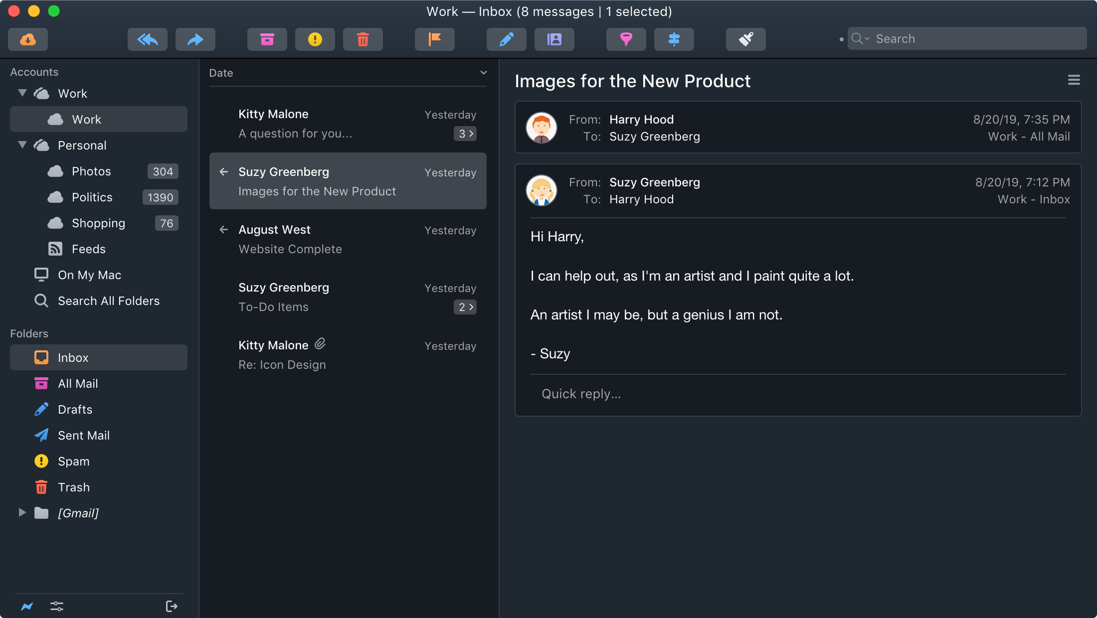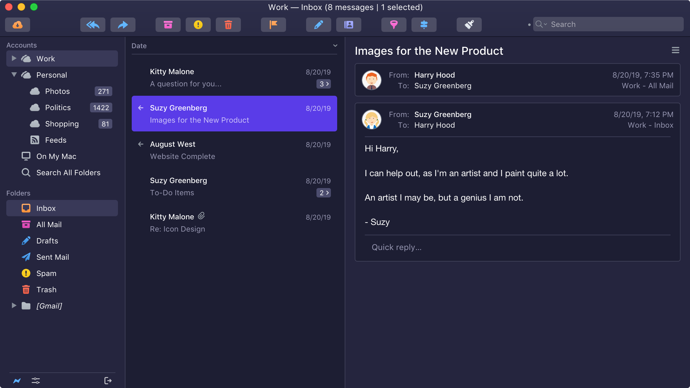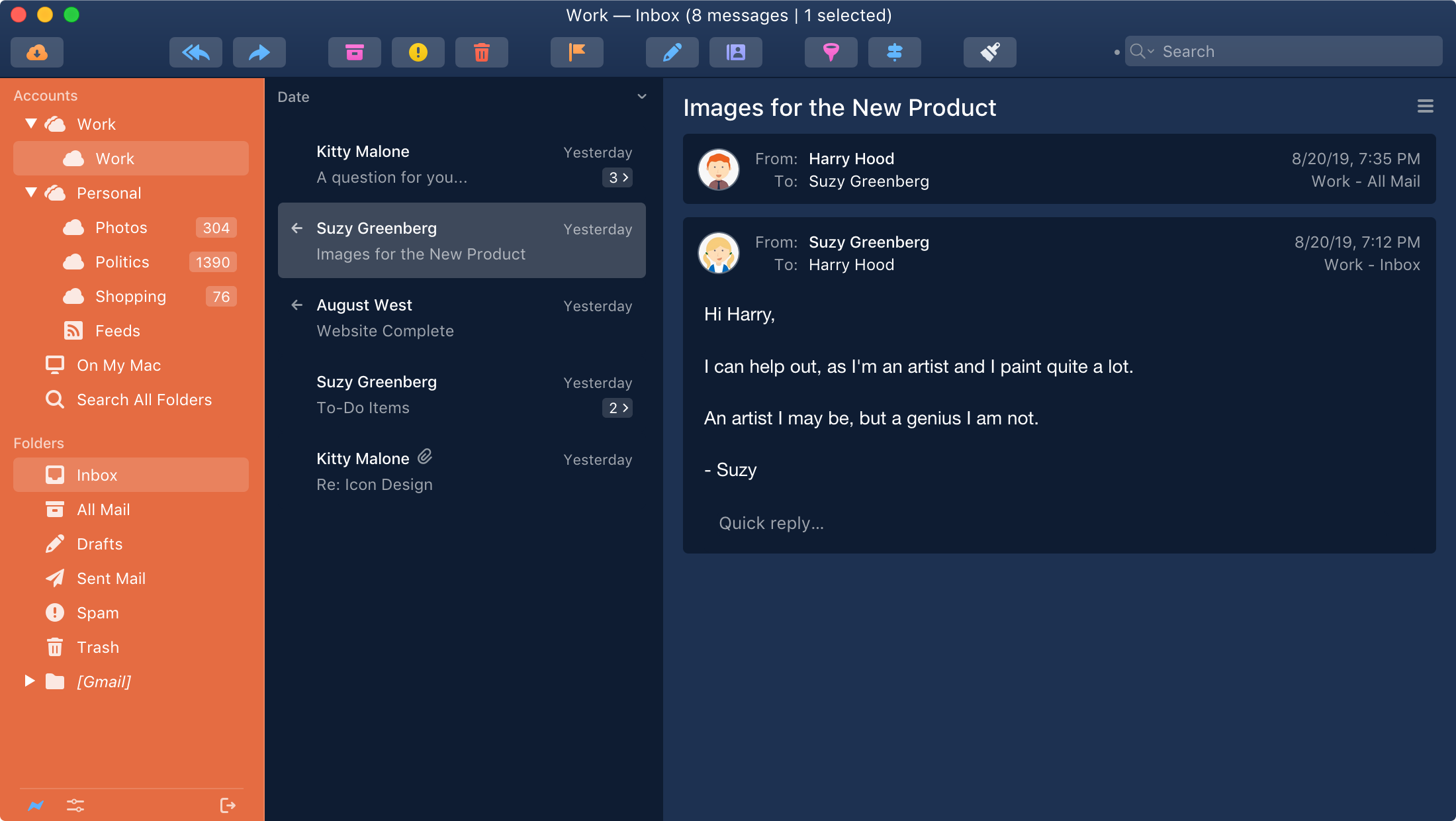 Postbox includes a Light and Dark theme, plus 22 additional themes in our "Classic Theme Pack." Additional themes can be purchased at our Theme Store.