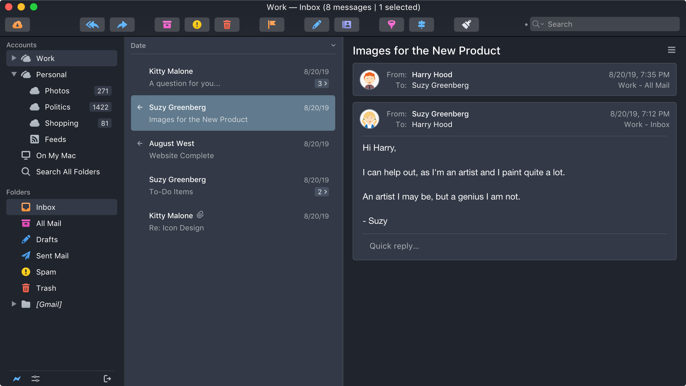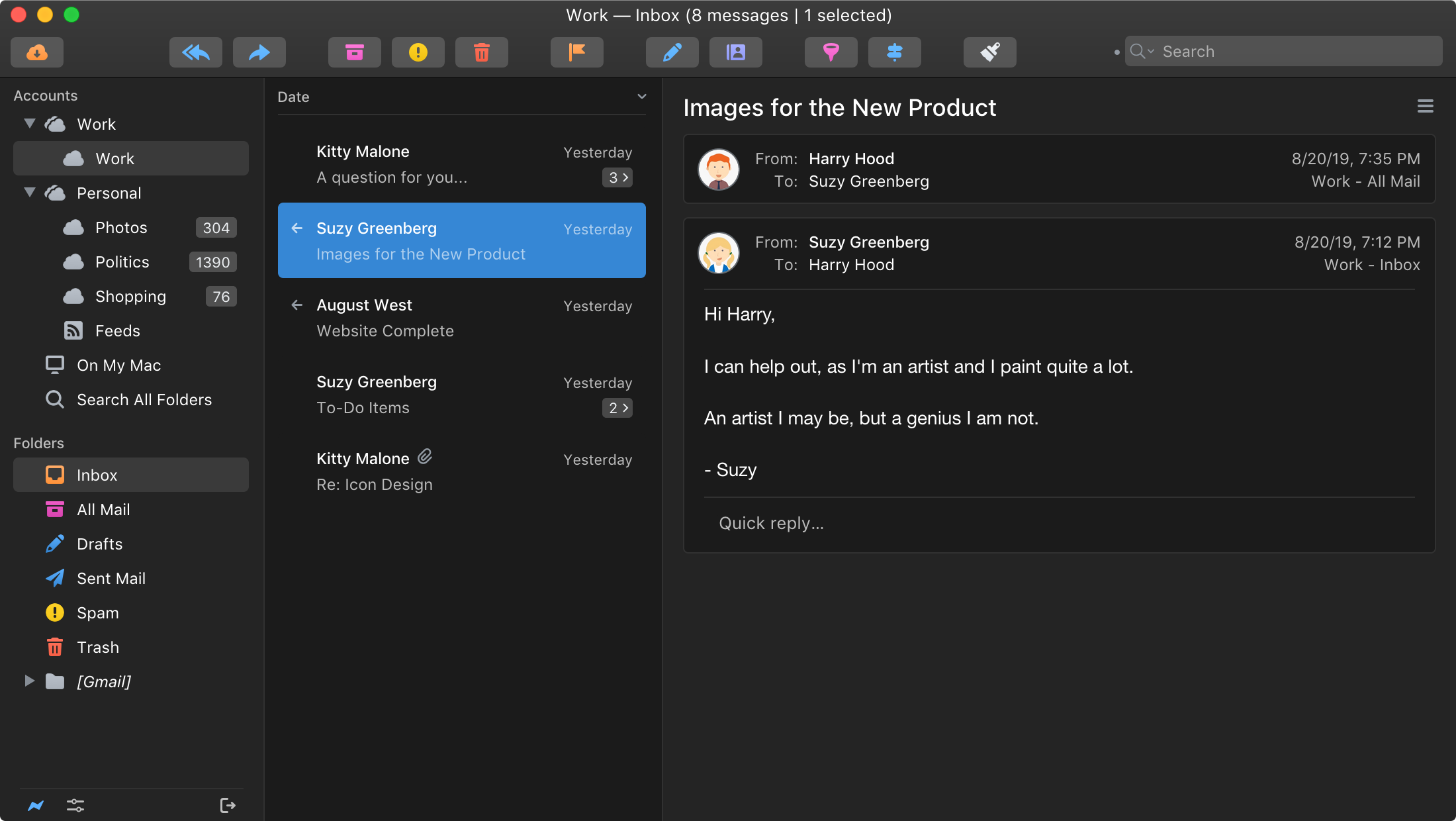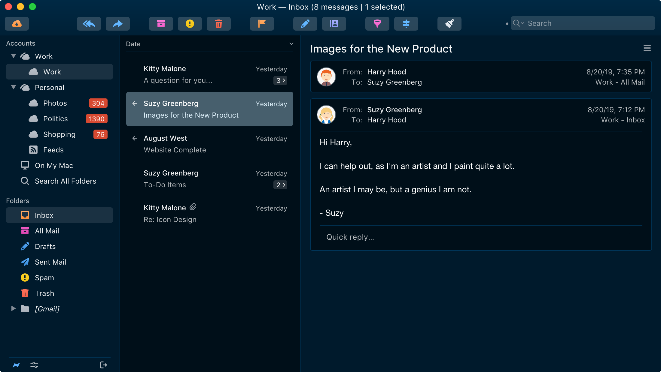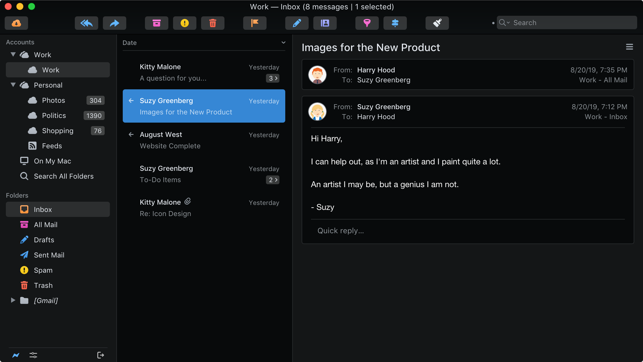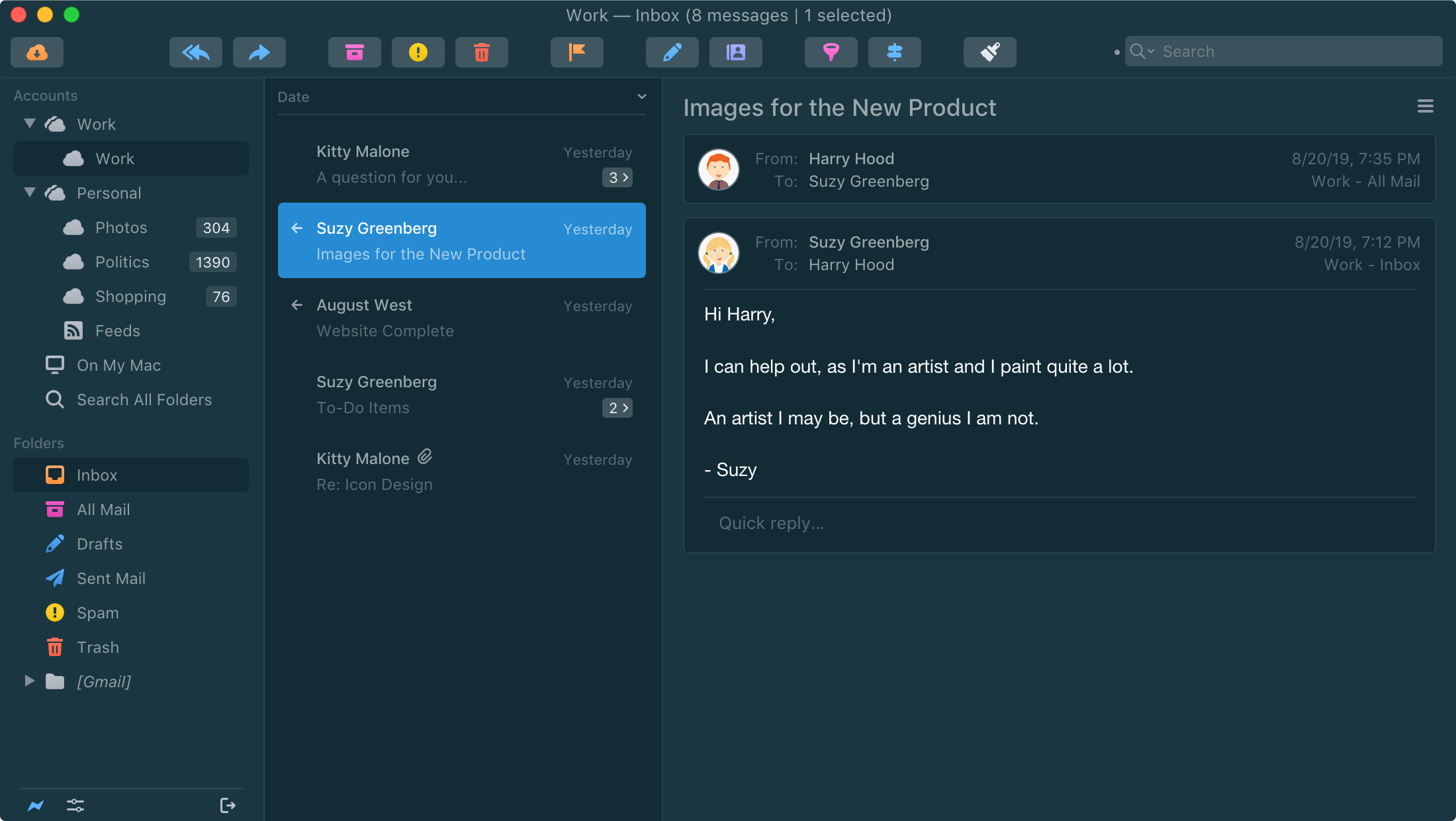 Postbox includes a Light and Dark theme, plus 22 additional themes in our "Classic Theme Pack." Additional themes can be purchased at our Theme Store.